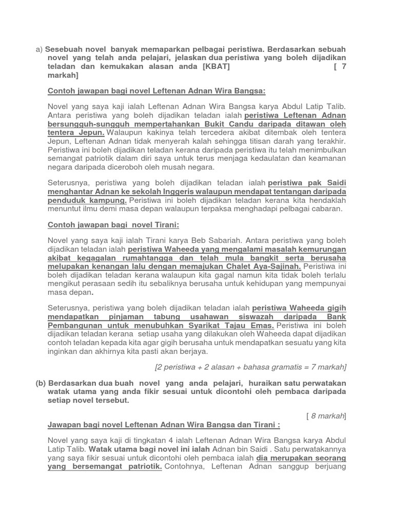 Contoh Jawapan Novel Tirani. Contoh jawapan bagi novel tirani: Sebagai contoh, waheeda sabar dalam menghadapi sikap zahid yang .