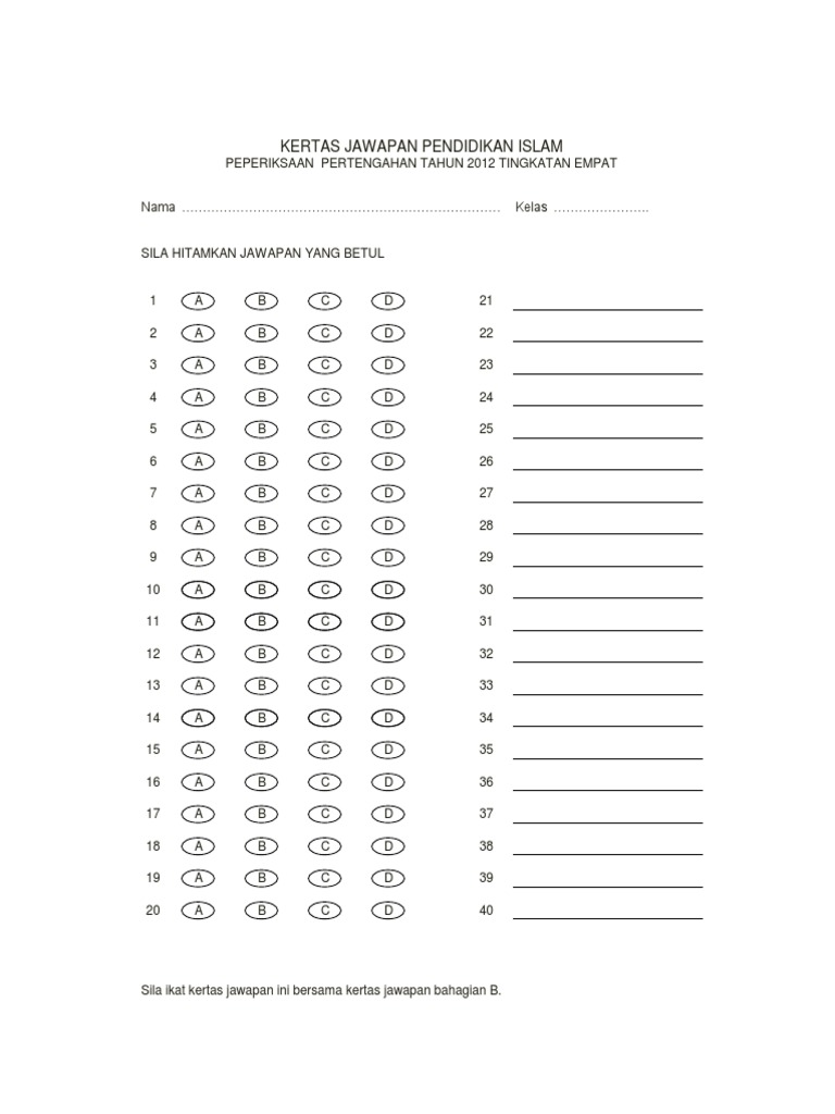 Spm tahun 2008 hingga 2018 (bab tingkatan 5) Kertas jawapan ( bahagian a). Borang jawapan objektif omr kh pdf document . Muat turun kertas jawapan objektif 20 soalan untuk kegunaan peperiksaan atau pentaksiran dalam bilik darjah perlbagai subjek.